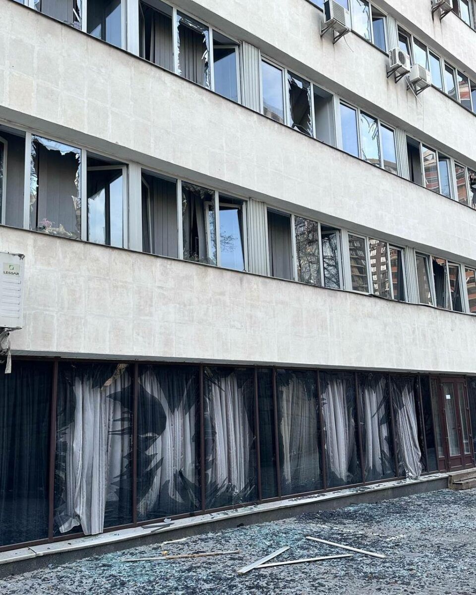 Заместитель руководителя офиса президента Кирилл Тимошенко отмечает, что повреждение получил гостиничный объект.