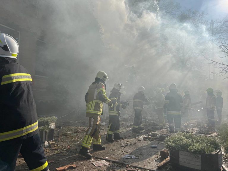 Из-за прилетов в Киеве возник пожар в нежилом здании, также прогремел взрыв и в жилом доме. Сотрудники ГСЧС спасли 18 человек, еще четверо пострадали.