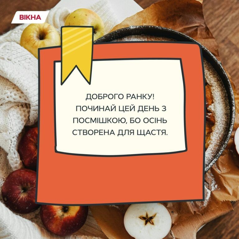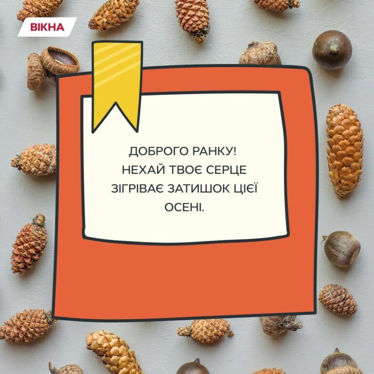 Вікна підготували для тебе серію картинок-привітань для доброго ранку осені з теплими написами, які можуть викликати посмішку та підняти настрій.
