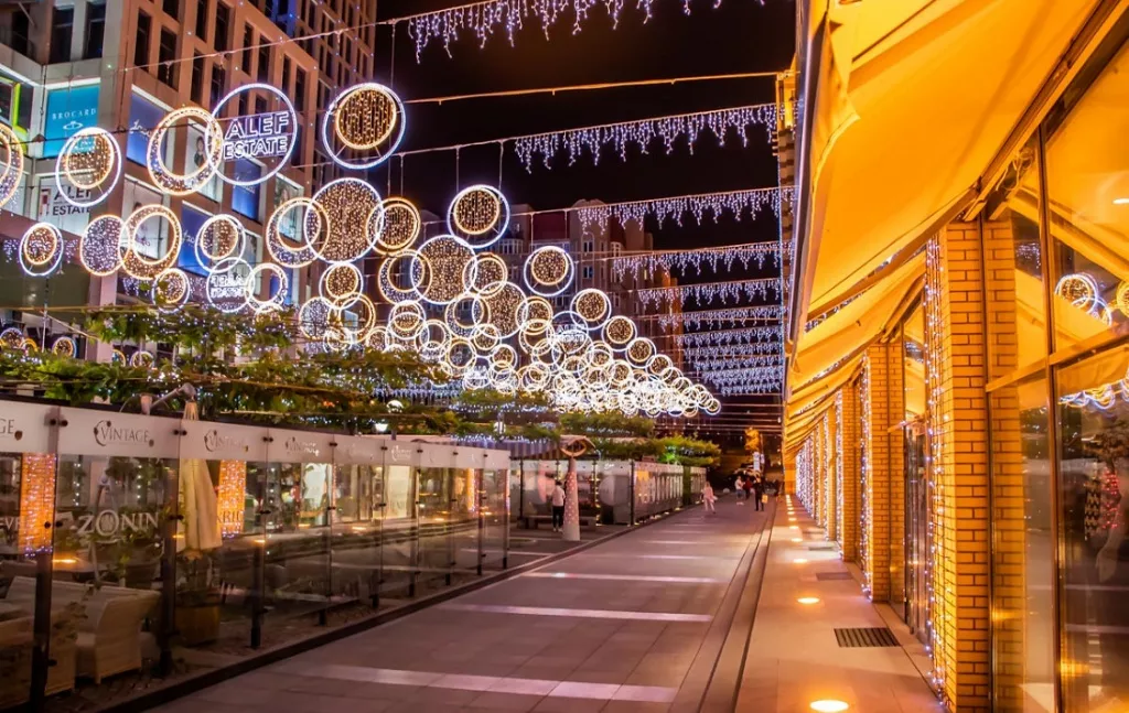 Вечірній Дніпро — то казка наяву. Катеринославський бульвар сяє вогнями, створюючи відчуття свята навіть посеред війни.