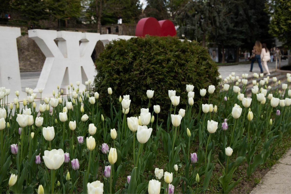 У міській раді розповідають, що було висаджено 42 тис. тюльпанів найрізноманітніших сортів. Серед них і Fabio, Antarctica, Sunlover, Purissima, Blue Diamоnd, а також Purple Jacket , Sunset, Purple Crystal, Barcelona.