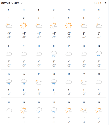 Раніше ми писали, яка буде погода в Києві в лютому 2026 — читай в матеріалі, що варто очікувати останнього місяця зими в столиці.