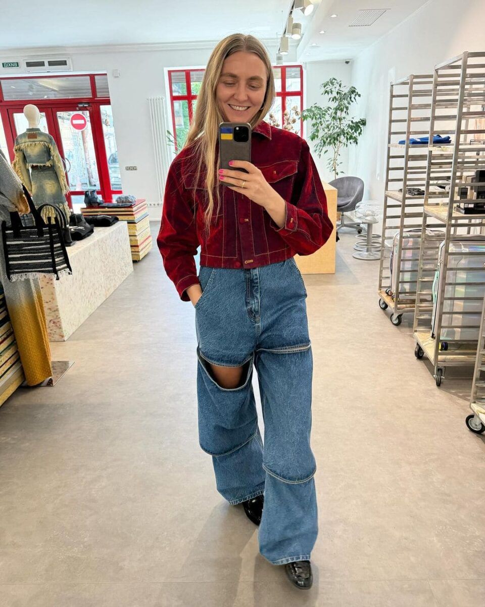 Концепція бренду передбачає виклик нормам, перероблення одягу та редизайн. Ксенія вигадала джинси, зшиті з двох частин. Також вона веде подкаст Нелегка промисловість.