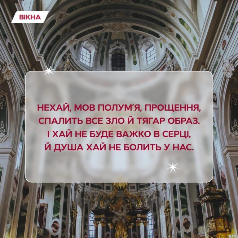 Цьогоріч віряни відзначатимуть Прощену неділю 2 березня, в останній день Масляної. Найважливішою традицією цього дня є прощення одне одного. Люди просять пробачення та забувають образи, які їм заподіяли. Вікна підготували для тебе привітання з Прощеною неділею, щоб ти міг (могла) надіслати їх тим, у кого хочеш перепросити.