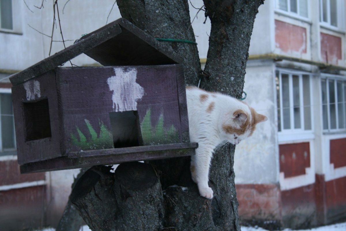 Тетяна Маніна застерігає від використання старого одягу чи ковдр у вуличних будках. Будь-яка тканина вбирає вологу та конденсат, перетворюючись на мокру крижану підстилку, яка лише витягує тепло. Найкраще рішення — це сухе сіно або солома, яке створює теплий повітряний прошарок.