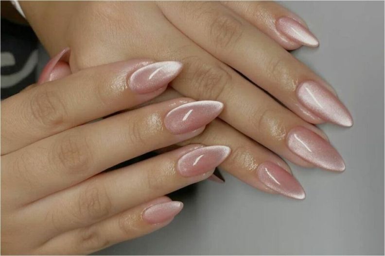 Ефект glazed donut, що став класикою, у 2026 році набуває рожевого підтону. Втирання наноситься на напівпрозору базу, створюючи ніжне сяйво морської перлини.