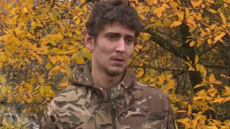 Його взуття ще вкрите окопною багнюкою, на голові шапка незвично довгого волосся. Хлопець каже, що зазвичай воно набагато коротше. Він знаходить у собі сили щиро усміхатися, згадуючи тривалий період на нулі.