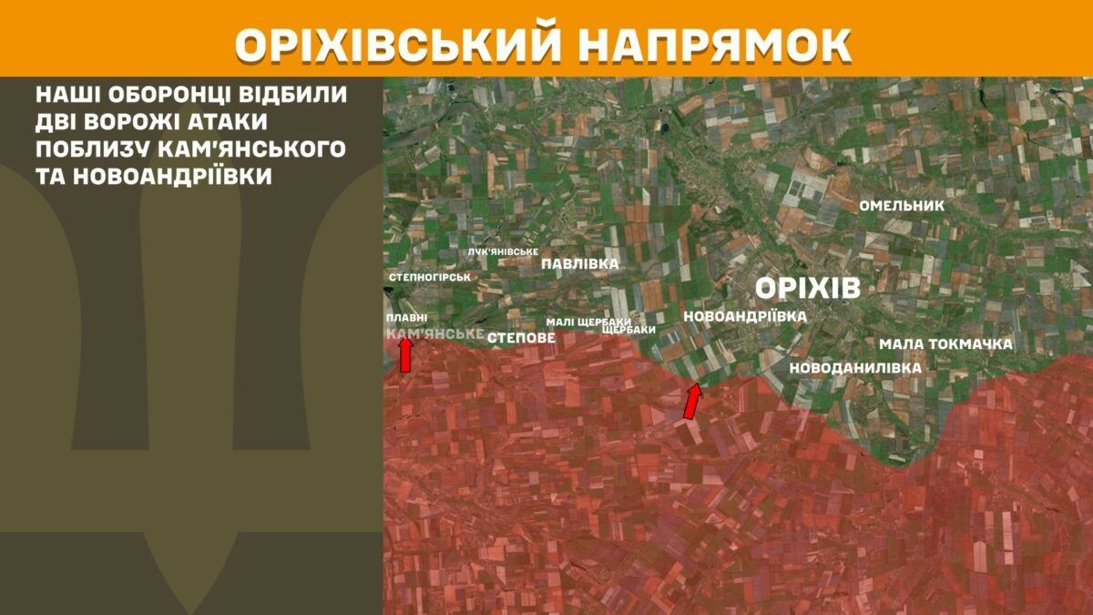 На Оріхівському напрямку відбито дві ворожі атаки поблизу Кам’янського та Новоандріївки.